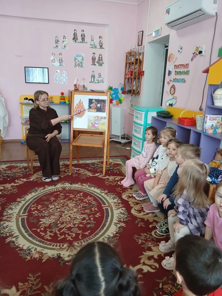 Беседа "Огонь-друг, огонь-враг" в младших группах "Семицветик", "Пчелка"